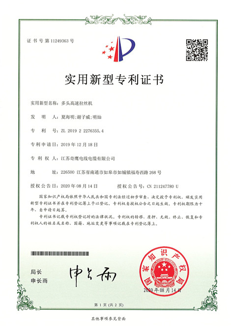 江蘇奇鷹是一家集研發、生產、銷售于一體的電線電纜知名企業,注冊資金31800萬元,占地面積22799平方米,廠房14820平方米。